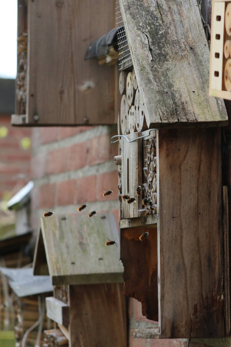 15 maart 2024: Sinds 2 maart vliegen er weer Gehoornde Metselbijen in mijn tuin. Ze zijn in de bijenhotelletjes de winter blijkbaar goed doorgekomen. Gisteren en vandaag, vlogen er veel mannetjes rond, te herkennen aan hun witbehaarde gezichtjes. Gisteren ook de eerste vrouwtjes en paringen gezien.